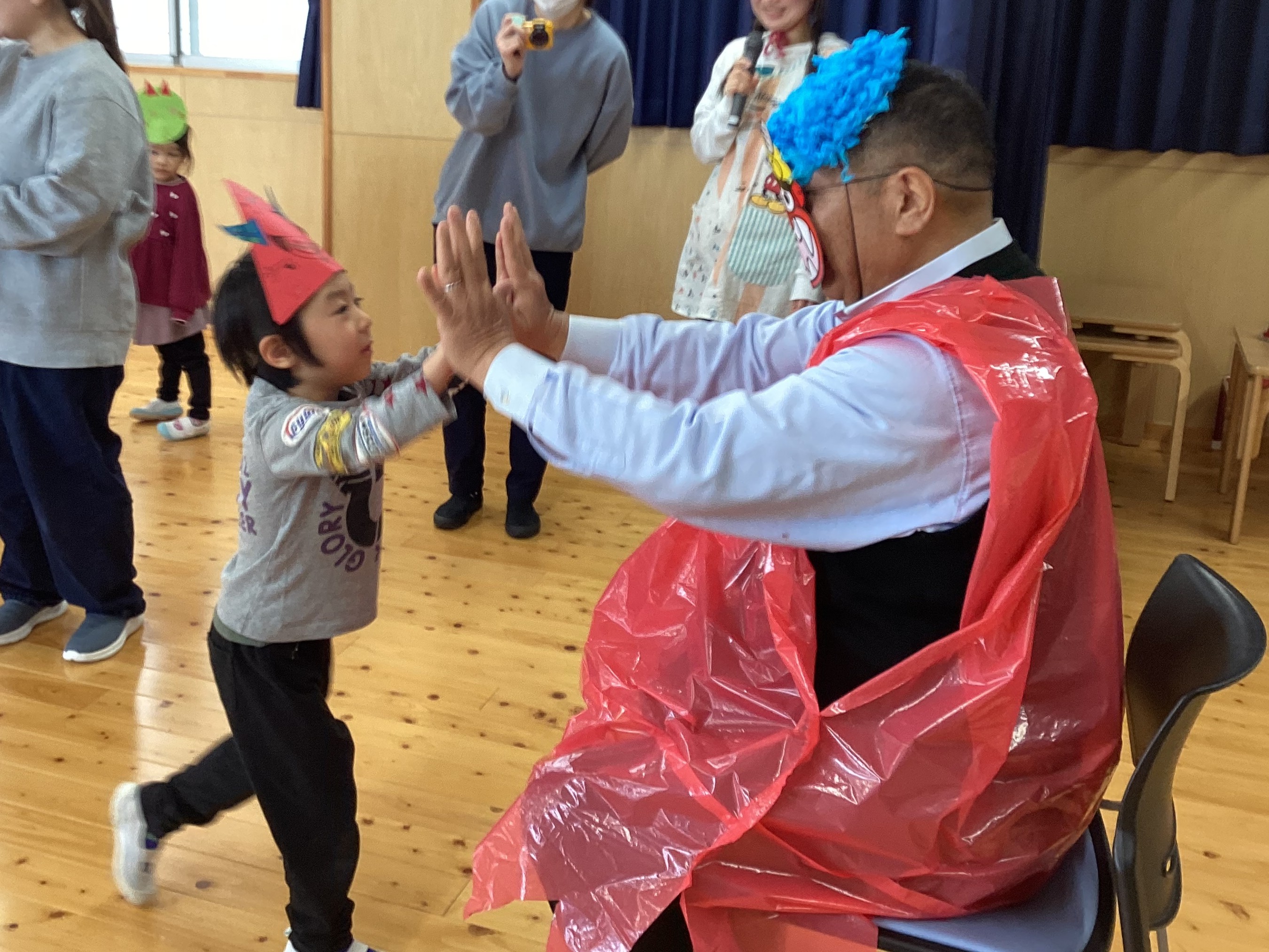 なんと!やさしいおにになってにじいろに来てくれたのは理事長先生でした!